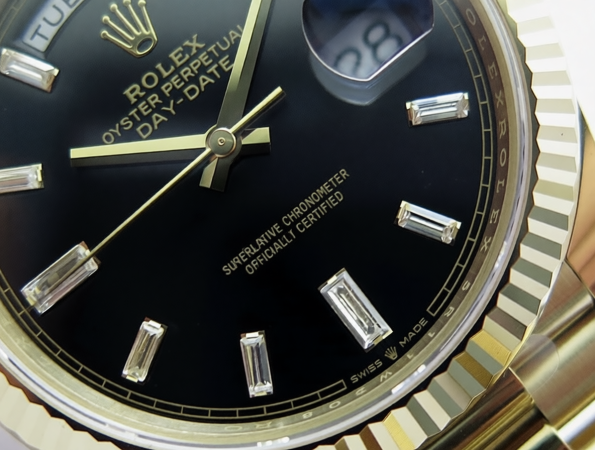 - Strap: 18K rose gold–plated solid 904L stainless steel President bracelet