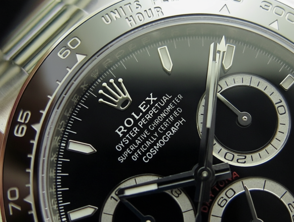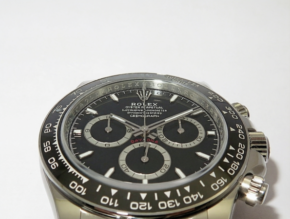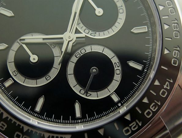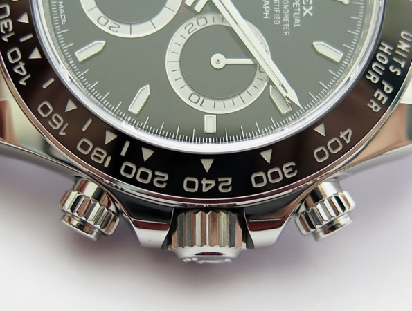 - Bezel: Black ceramic tachymeter bezel with stainless steel outer wrap — ultra-durable, fade-resistant, and precisely engraved with crisp numerals